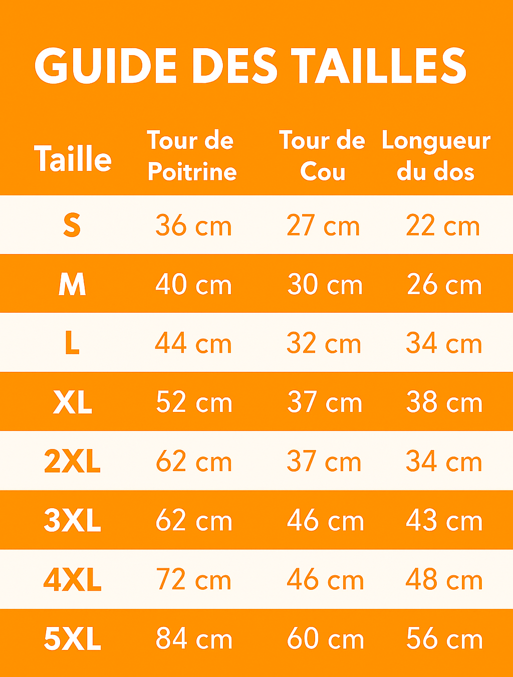 - Tailles : XS à 5XL (guide des tailles disponible)