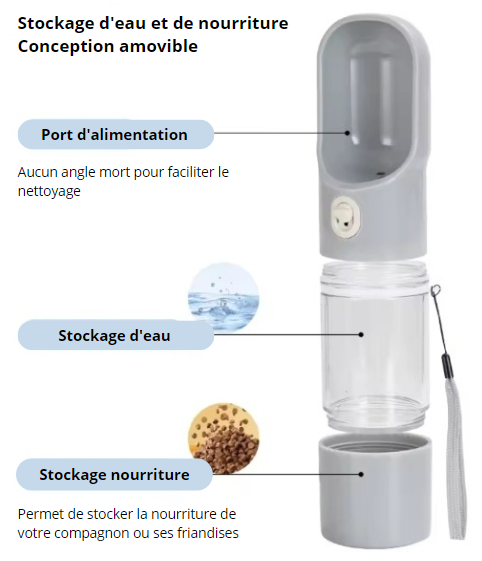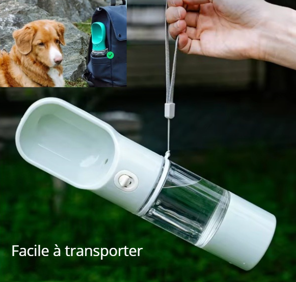 Superbe bouteille pour chien, facile à nettoyer et à emporter partout. J'adore son design et sa couleur. Elle permet à mon chien de rester hydraté et de boire facilement sans perdre l'eau non utilisée. Superbe design.