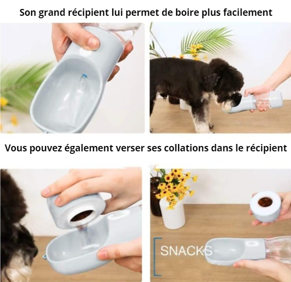 Que ce soit après une séance de jeu, une randonnée ou un trajet en voiture, votre chien reste hydraté et heureux.